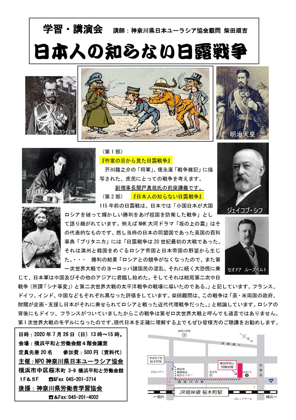 7月26日(日)学習会『日本人の知らない日露戦争』『作家の目から見た日露戦争』