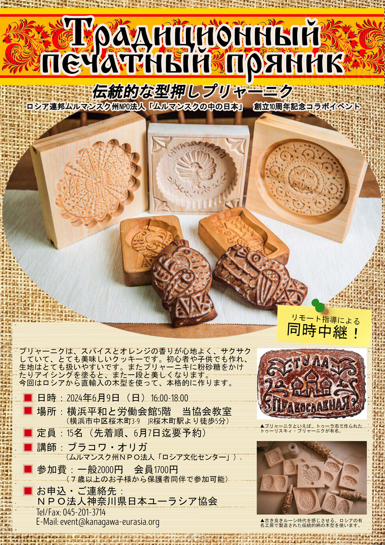 6月9日(日)料理教室 ロシアの伝統的なお菓子「プリャーニク」を作ろう!