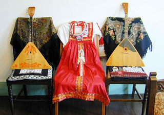 民族楽器バラライカ、民族衣装サラファン、プラトーク(ストール)