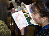 S会員から即席で水彩画の似顔絵がヤンキナ母娘にそれぞれ贈呈されました。お二人は大喜び!