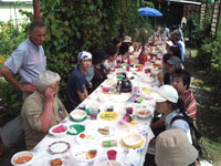 見学後、交流パーティーを行い大自然の中で手作りの自然食を楽しみました。