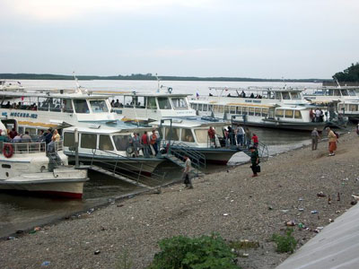 帰路は借り切りの客船を利用しました。船上デッキでアムール両岸の素晴らしい風景を見ながら