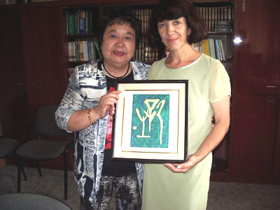 ここでは子供達と、お習字、刺繍(ロシア側)、