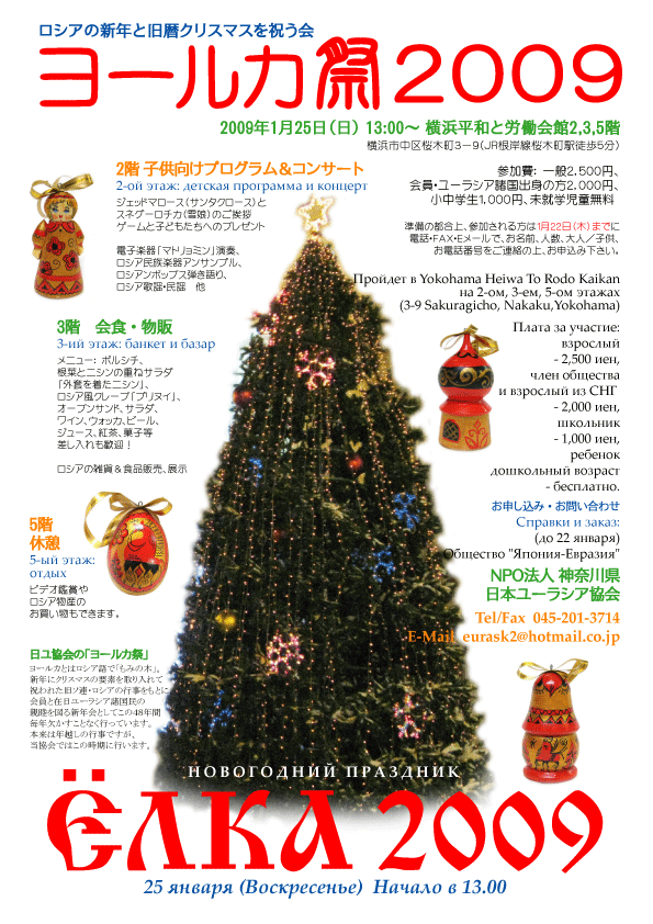 いまどきは、季節も、時節も、冬のただ中 以 上 行事予定◆ ロシアの新年とクリスマスを祝う「ヨールカ祭」